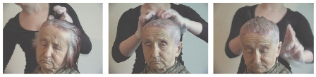 U odnosu na tijelo autorice koja je u pozadini, nana je tamo gdje obično kažemo da nam je duša, u ovom slučaju, duša autorice koja pokušava da sijedim vlatima da novu boju, da te vlati ili priče sačuva od protoka vremena, vremena koje uz pomoć medija fotografije ostaje i istom odoljeva, vremena koje bilježi statična kamera. Pri tome autorica ne baš tako stručnim pokretima češlja pokušava da na svaku dlaku nanese dovoljno farbe za kosu. Ona kao da pokušava da organizira neku hronologiju priča ili vlati kose koje izlaze iz nanine glave, ta hronologija nije vremenska, ta hronologija je životna i ona tek na kraju ostavlja dojam potpunosti, dojam cjeline.